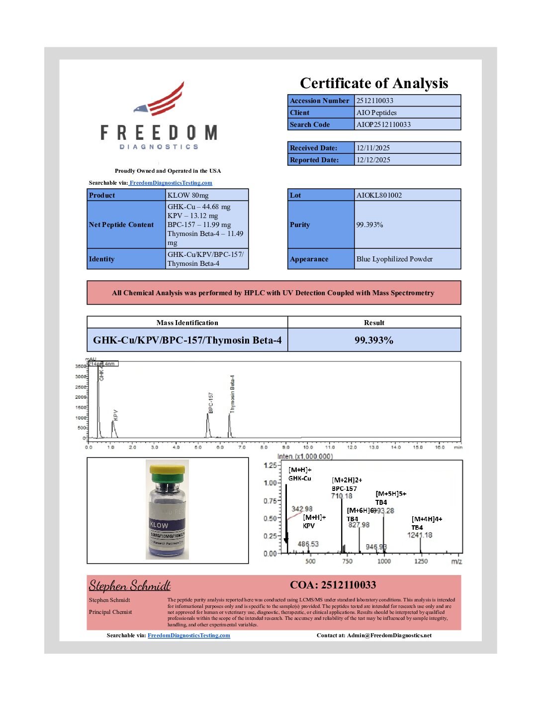 KLOW is a next-generation peptide formulation designed to support total body recovery, skin rejuvenation, and systemic healing. This advanced blend combines four clinically studied peptides—GHK-Cu, BPC-157, TB-500, and KPV—each known for their powerful regenerative, anti-inflammatory, and restorative properties.