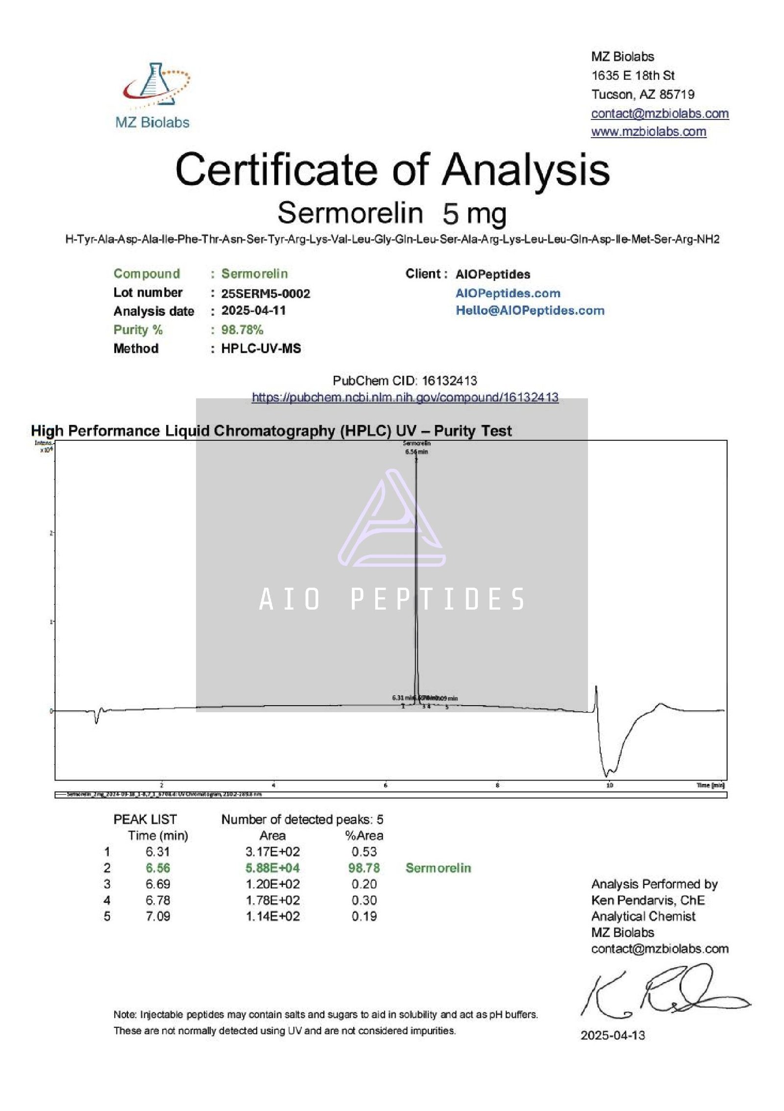 Sermorelin is a synthetic peptide composed of the first 29 amino acids of growth hormone–releasing hormone (GHRH). This fragment retains full biological activity, making it capable of stimulating the pituitary gland to naturally release growth hormone (GH).